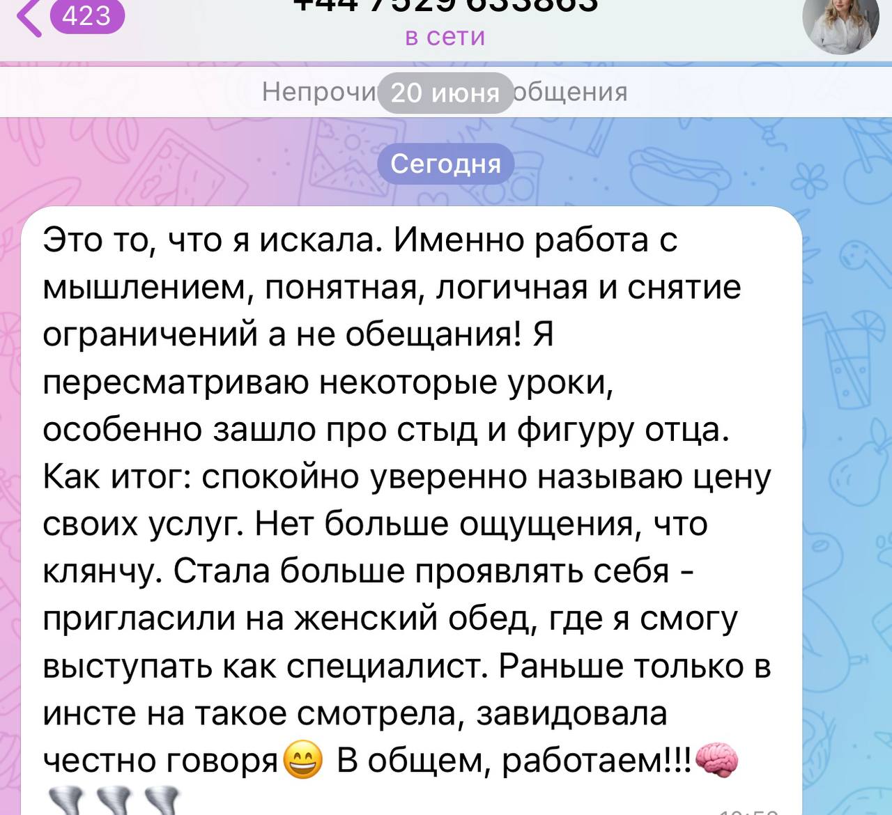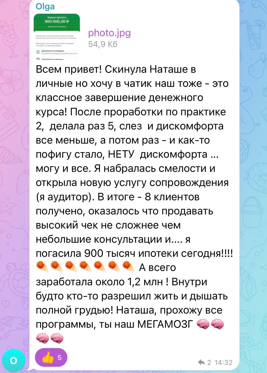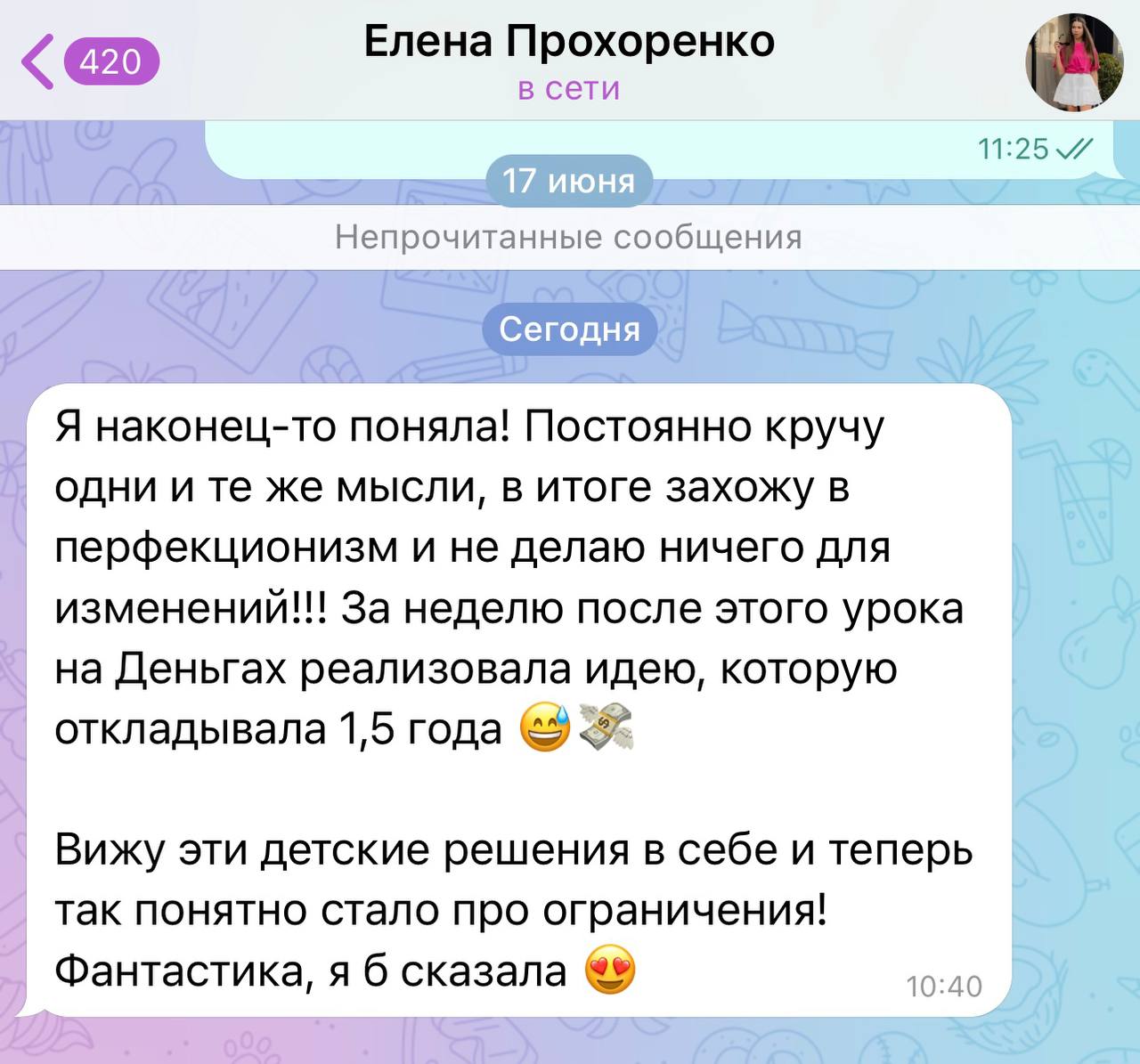 Итог: Осознаете свой процесс и позицию в отношении денег и поймете, как это влияет на вашу текущую ситуацию доходами.