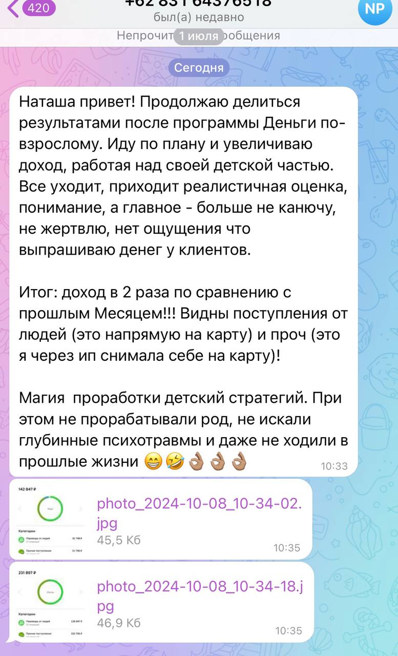 Итог: поймете, как ваши травмы влияют на отношения с деньгами и какие комплексы вы хотите закрыть с помощью денег, но почему-то это не работает.