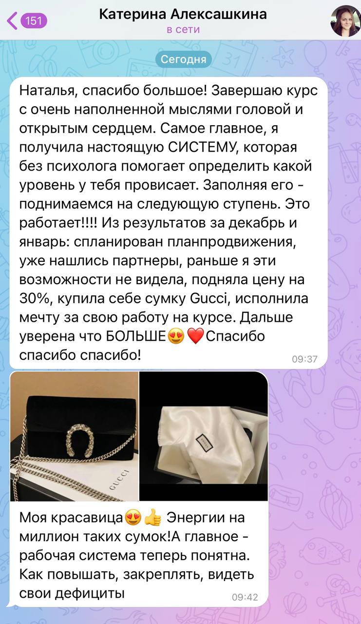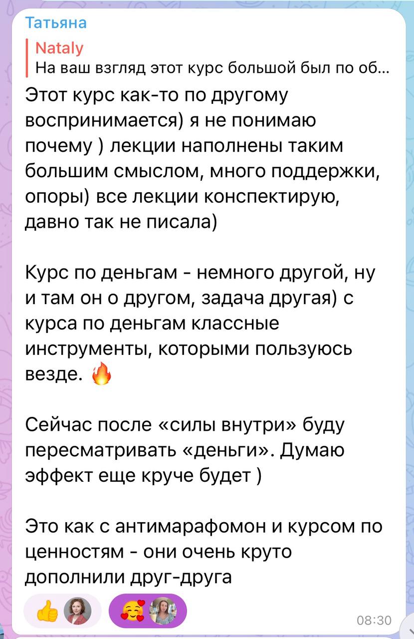 Результат: Научитесь определять свои ценности и принципы, поймете зачем им следовать. Увидите принципы, которые помогают развиваться, а не просто потреблять гигабайты теорий, которые не знаешь, куда и как применить. Станете видеть ускоренные результаты развития, применив эту систему в сочетании с взращиванием внутренней опоры.